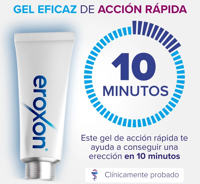 Eroxon cuenta con una innovadora tecnologia que actua en minutos promoviendo una sensación de firmeza y control.Su fórmula de acción rápida que incluye ingredientes clave que te ayudan a mantenerel rendimiento y la confianza cada momento.
